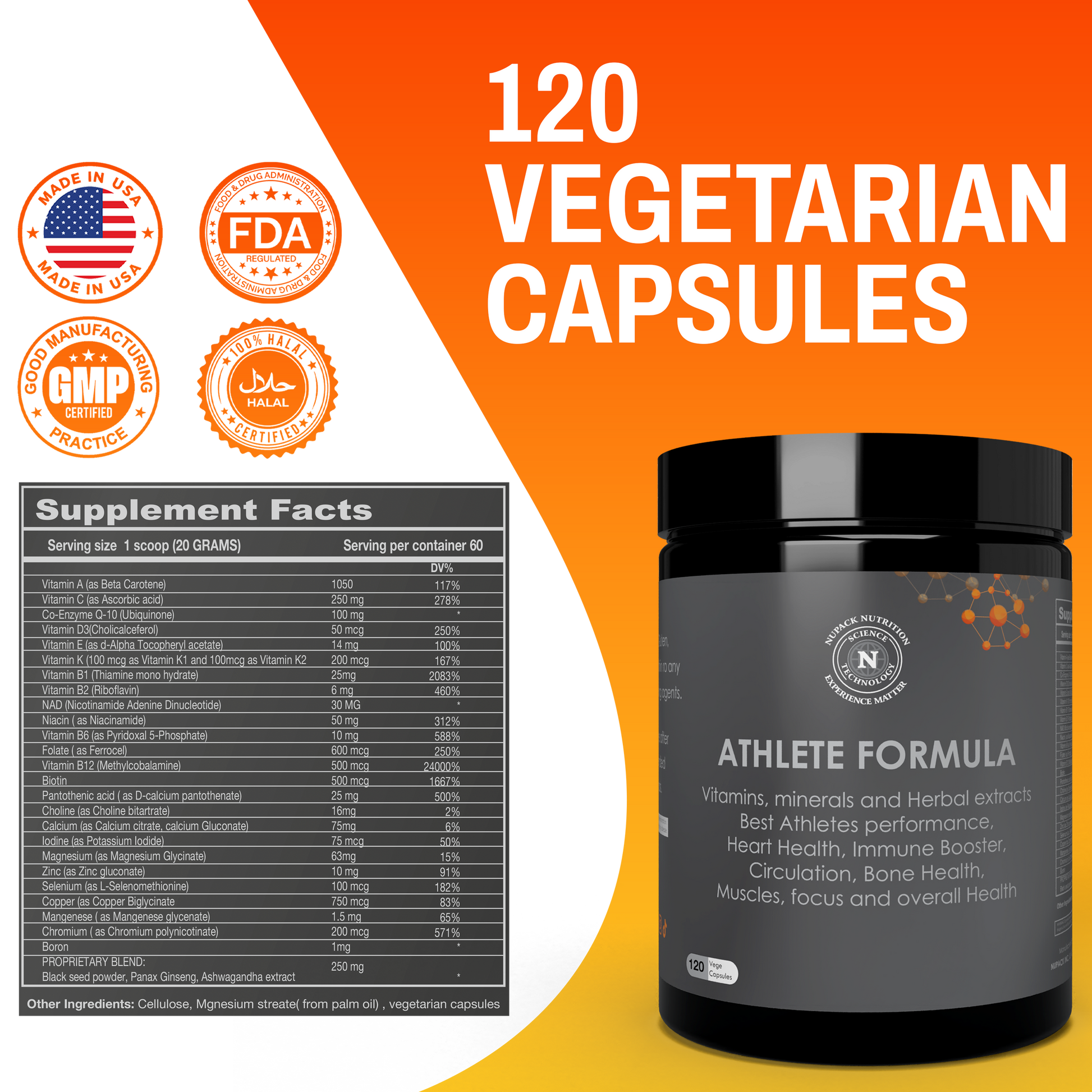 Athlete Formula by NUPACK is a premium multivitamin crafted for active individuals who want complete daily support. This advanced blend combines essential vitamins, minerals and herbal extracts designed to fuel performance and overall wellness.