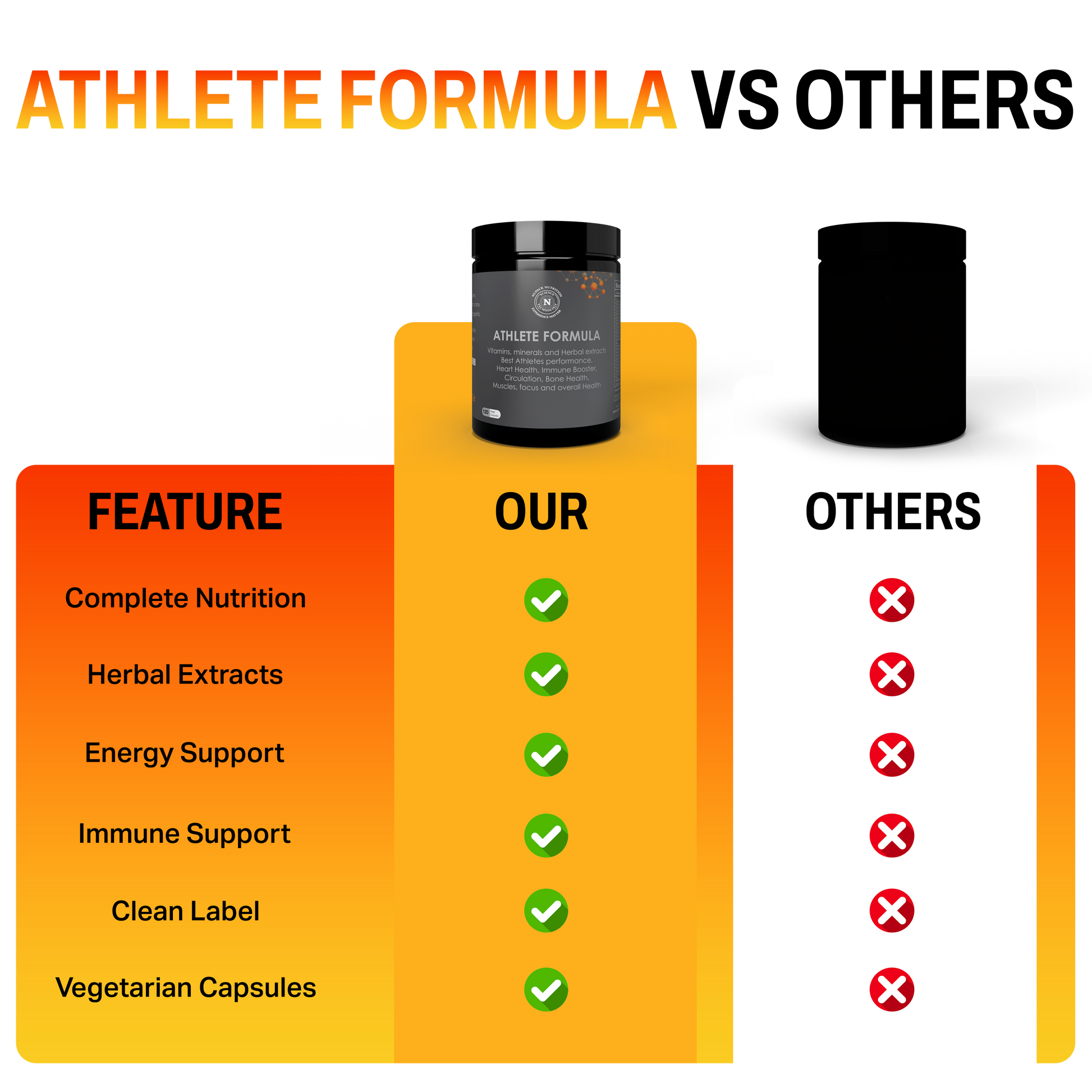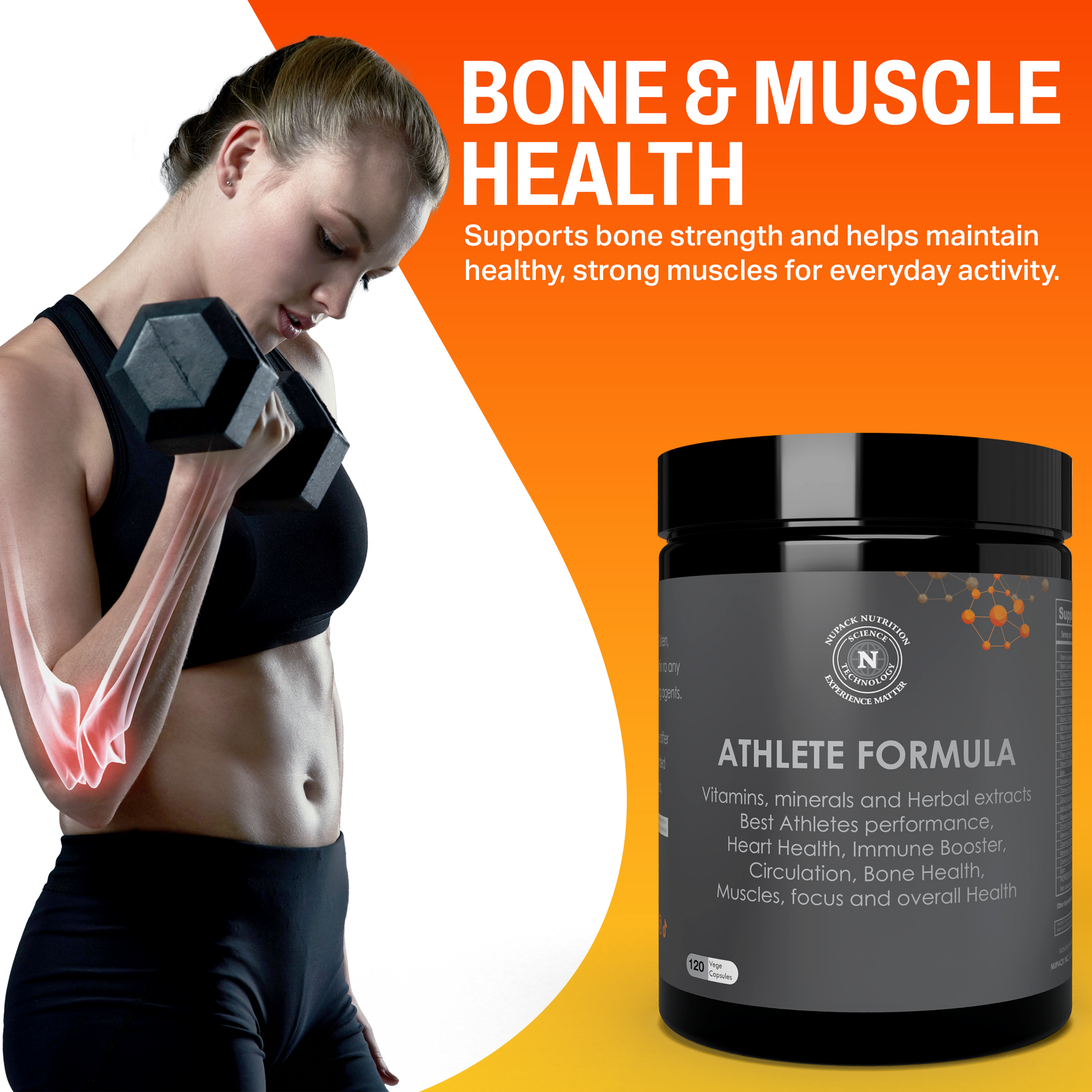 Athlete Formula also supports strong muscles, flexible joints and healthy bones with the help of Calcium, Vitamin K, Biotin and other essential minerals. This combination works together to promote endurance, mobility and long-term body strength.