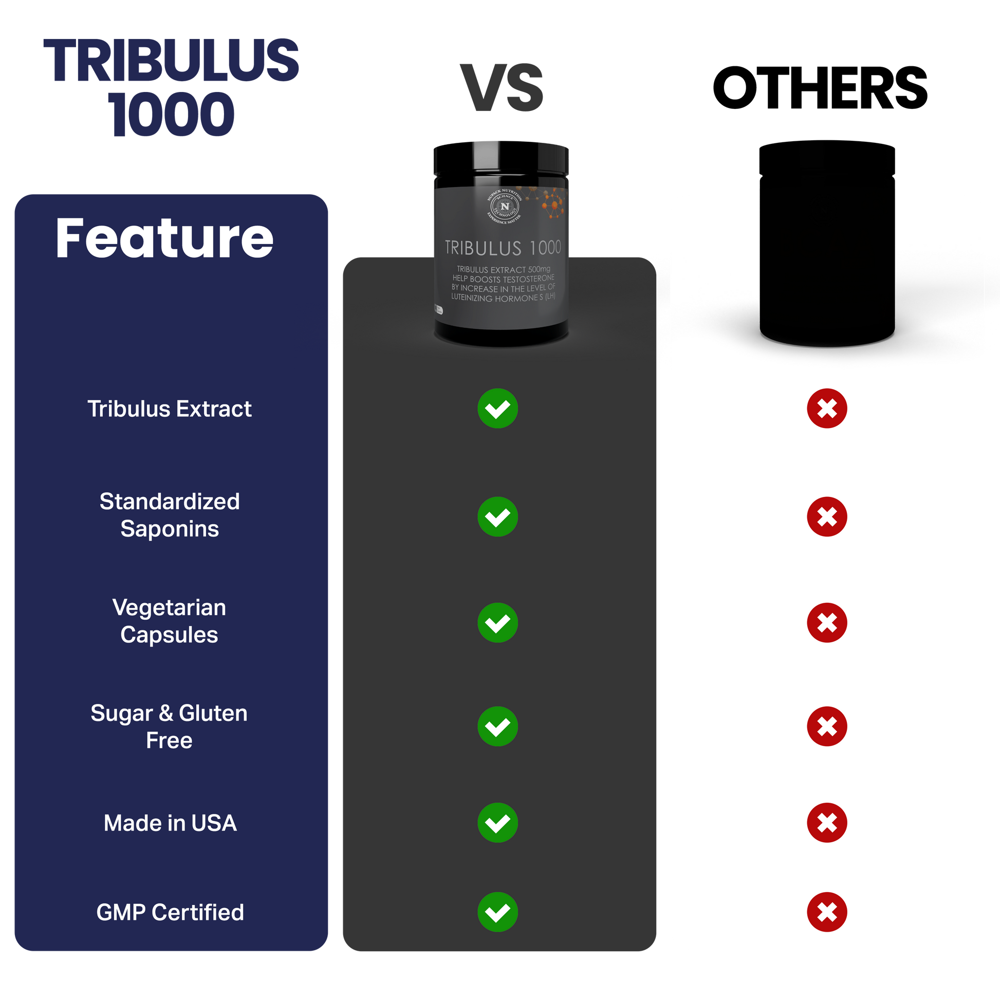 Ø High-Potency Tribulus Extract: Contains 500mg of Tribulus Terrestris standardized to 90% saponins for maximum performance support.