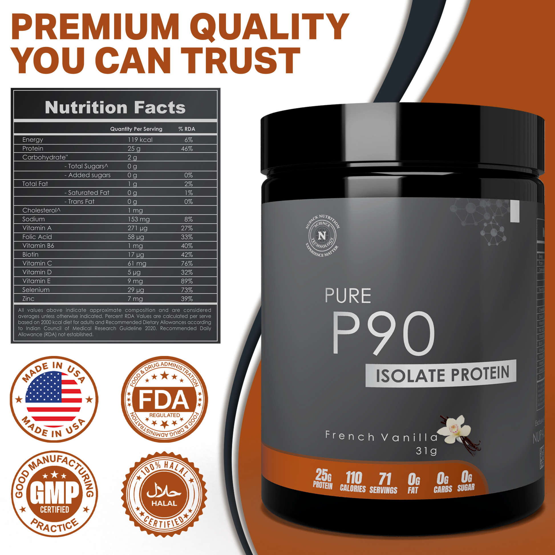 Pure P90 Isolate Protein is manufactured and distributed by NUPACK Inc., Illinois, USA. It is produced following quality and safety standards. This product is intended for adult consumption only and should not be used as a substitute for a varied and balanced diet.